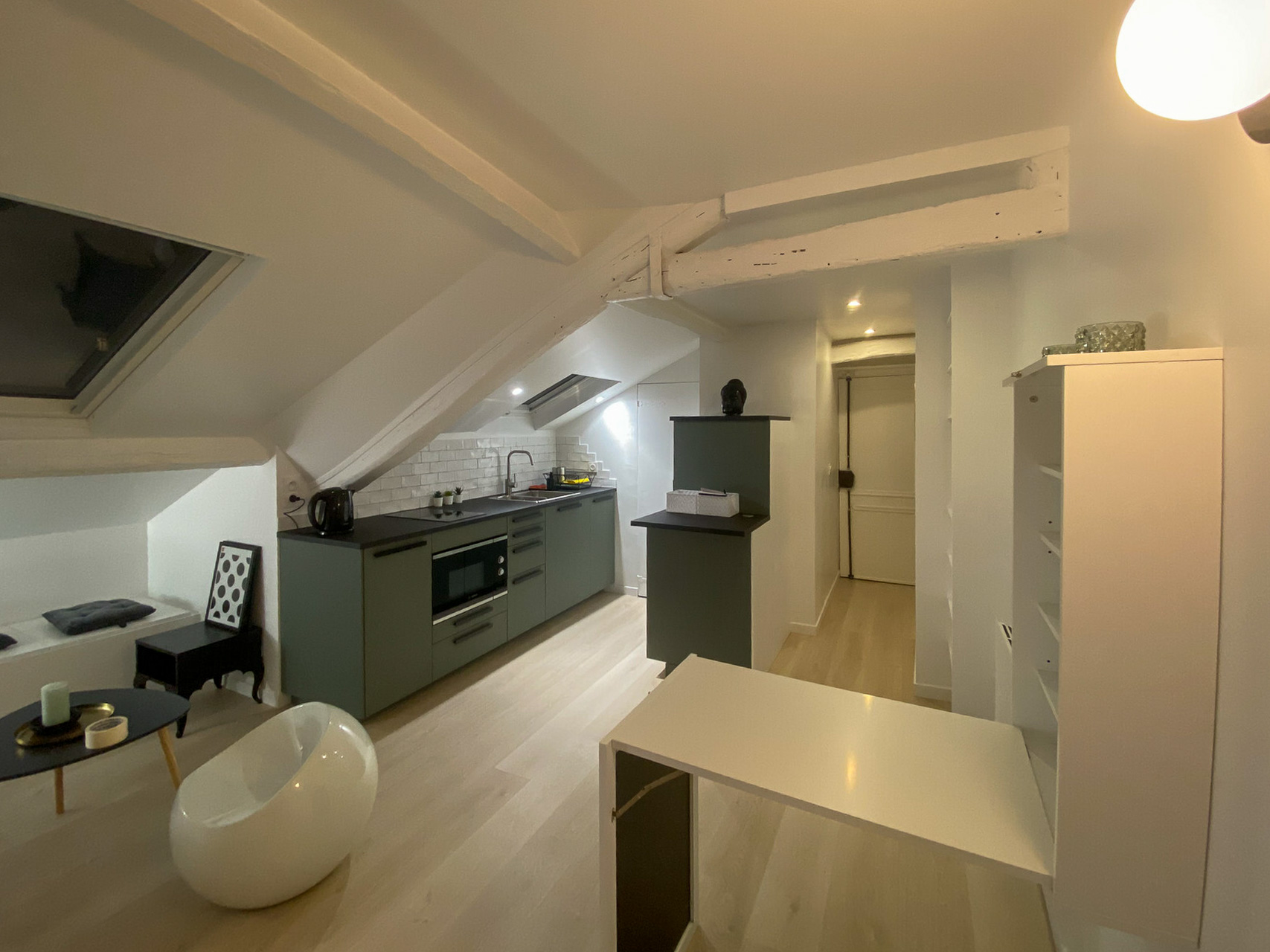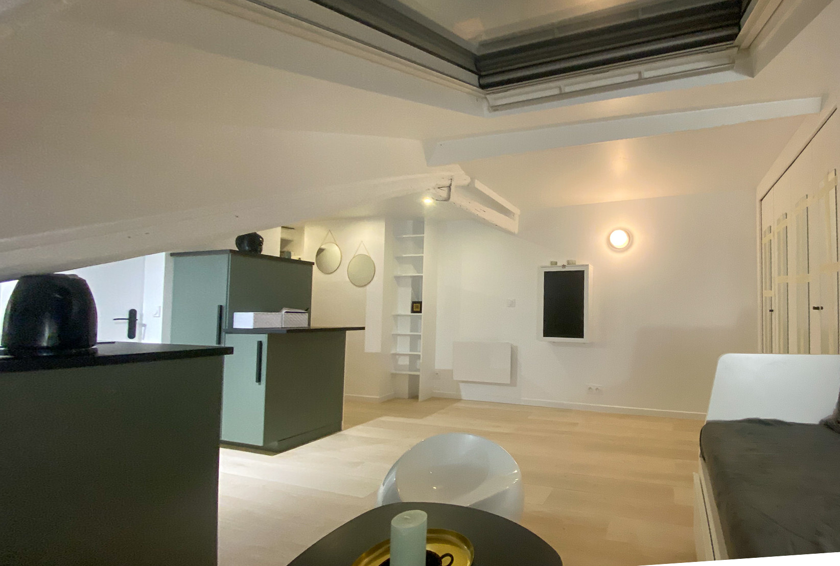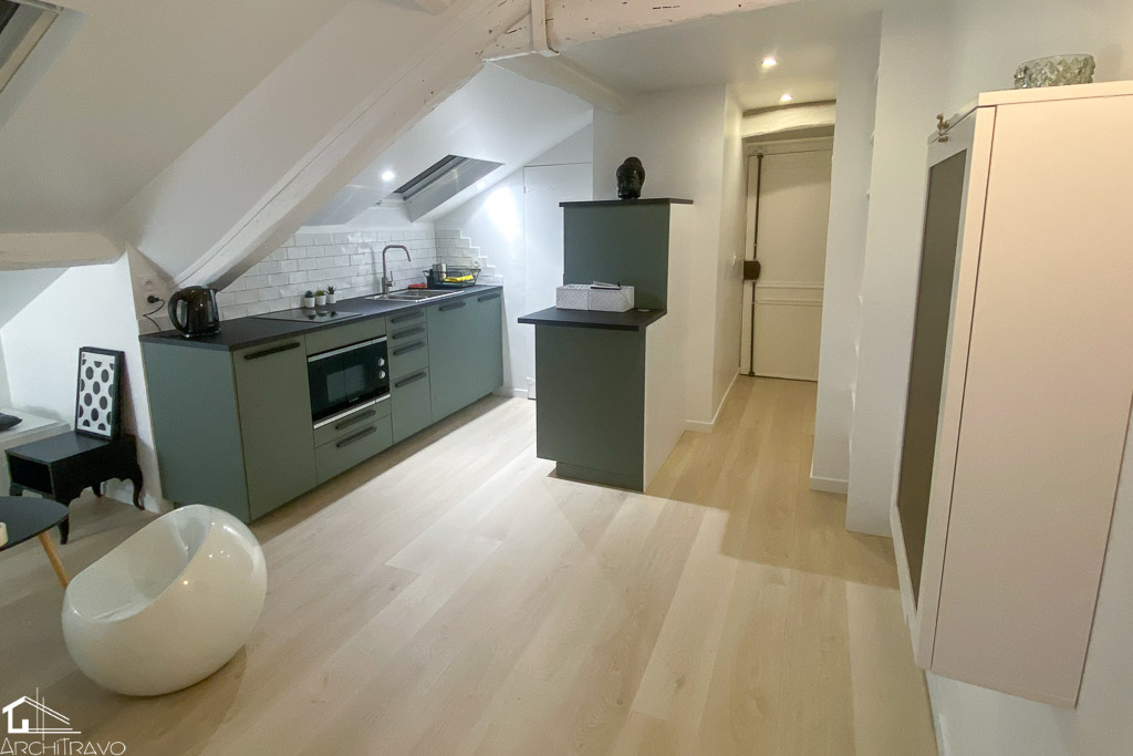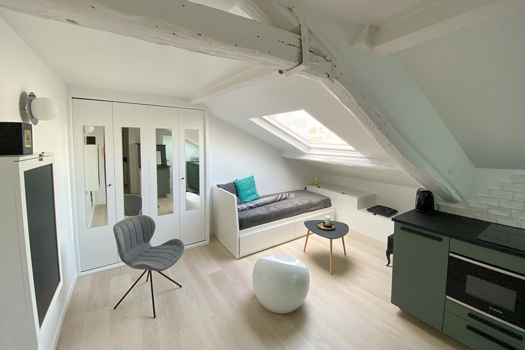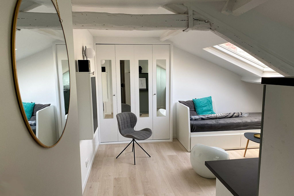 Locataires d’un grand appartement parisien, Ju* et Cy* ont décidé d’acheter leur 1er studio pour le mettre en location meublée. Si l’état général était correct, il nécessitait une transformation astucieuse pour en maximiser le revenu locatif et son potentiel « coup de cœur ».