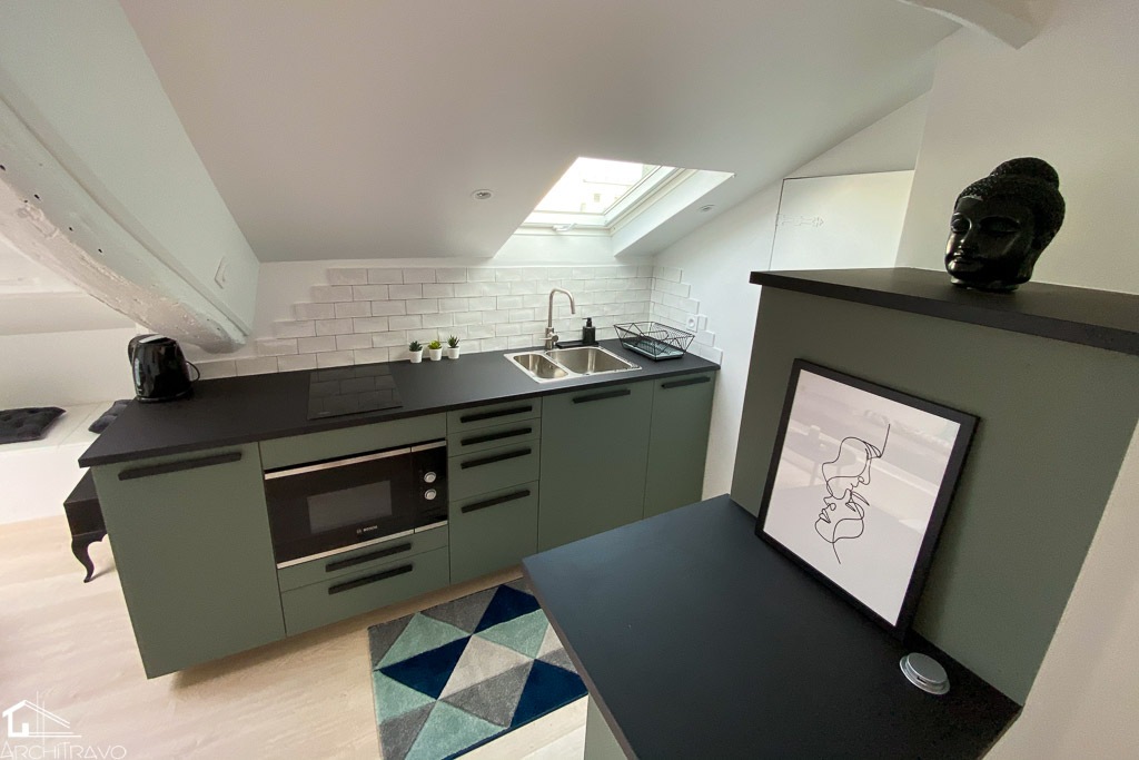 Un projet dont les maîtres mots auront été astuce et pragmatisme, au service de la finalité attendue par Ju* et Cy* Après 6 petites semaines de travaux, l’appartement était totalement équipé et décoré, prêt à être loué. Le résultat Avant/Après a totalement conquis J. et C.