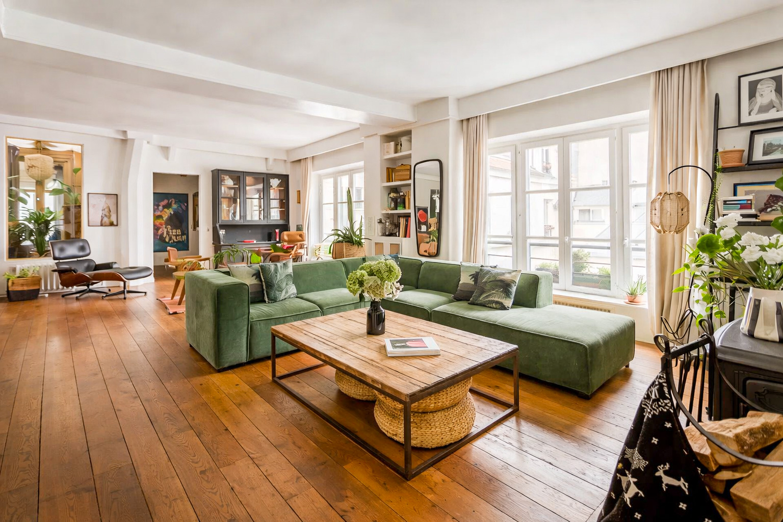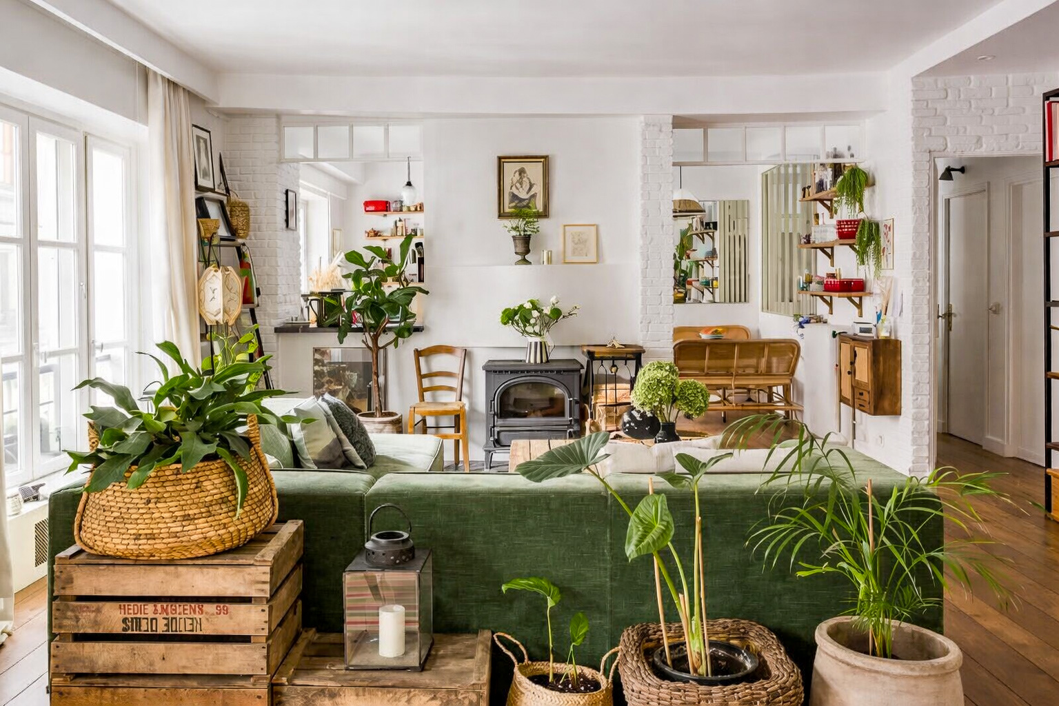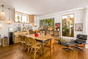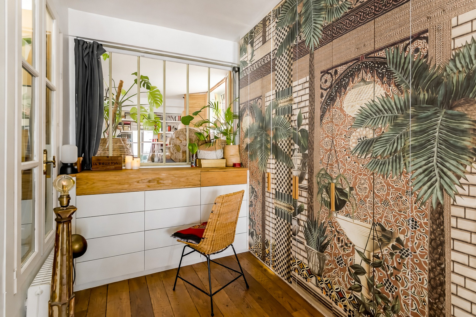 Lorsque nous rencontrons Vir* et Nie*, l’appartement fonctionne déjà. Installé au premier étage d’un immeuble donnant sur une cour aux anciennes devantures d’ateliers, le lieu raconte une histoire artisanale et végétale que le couple s’est appropriée au fil du temps.