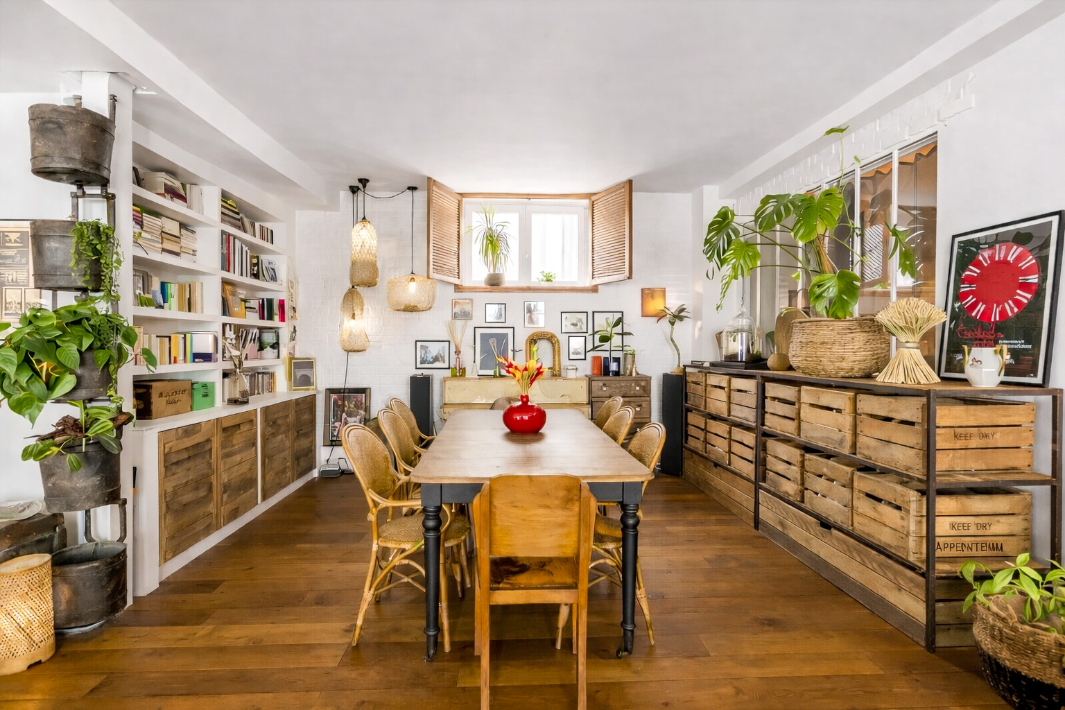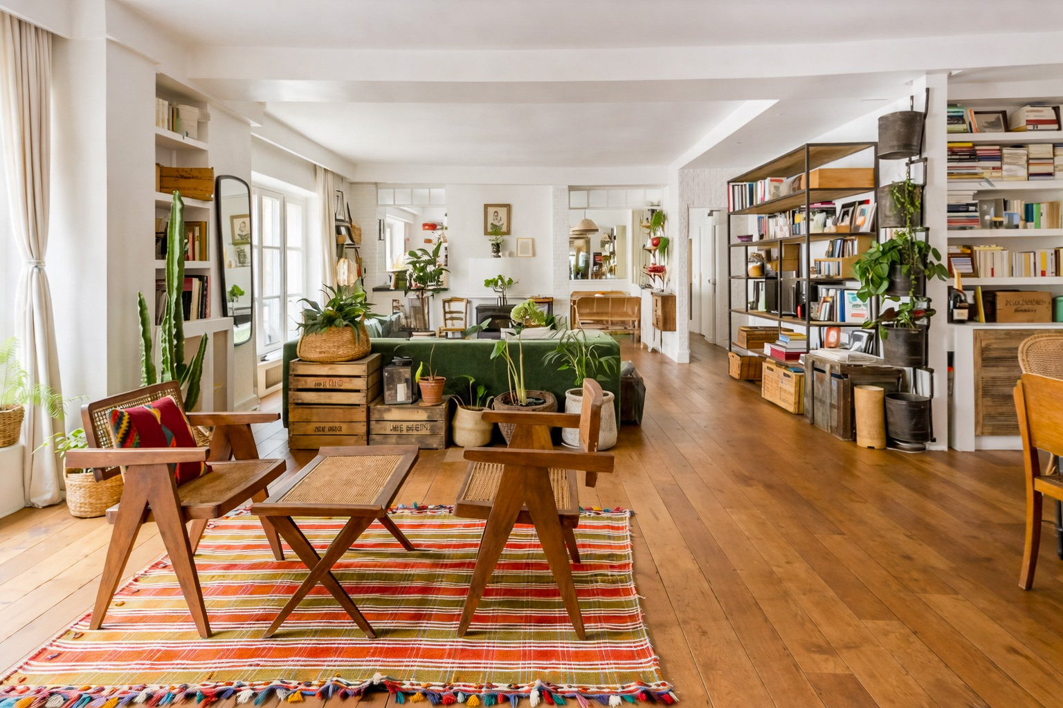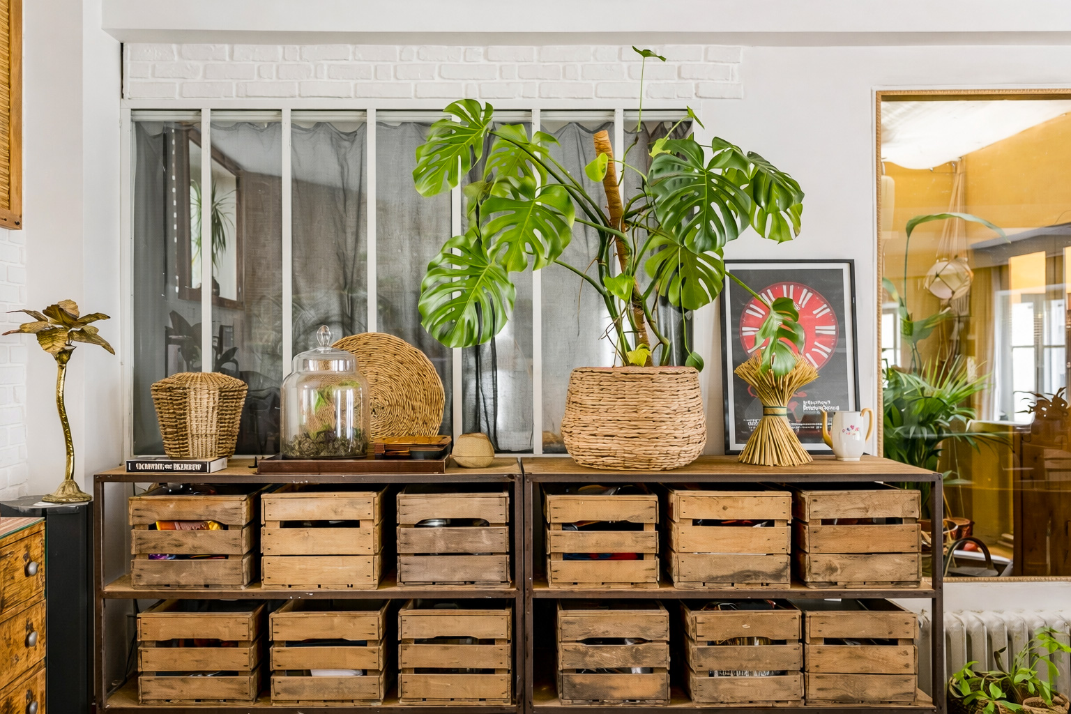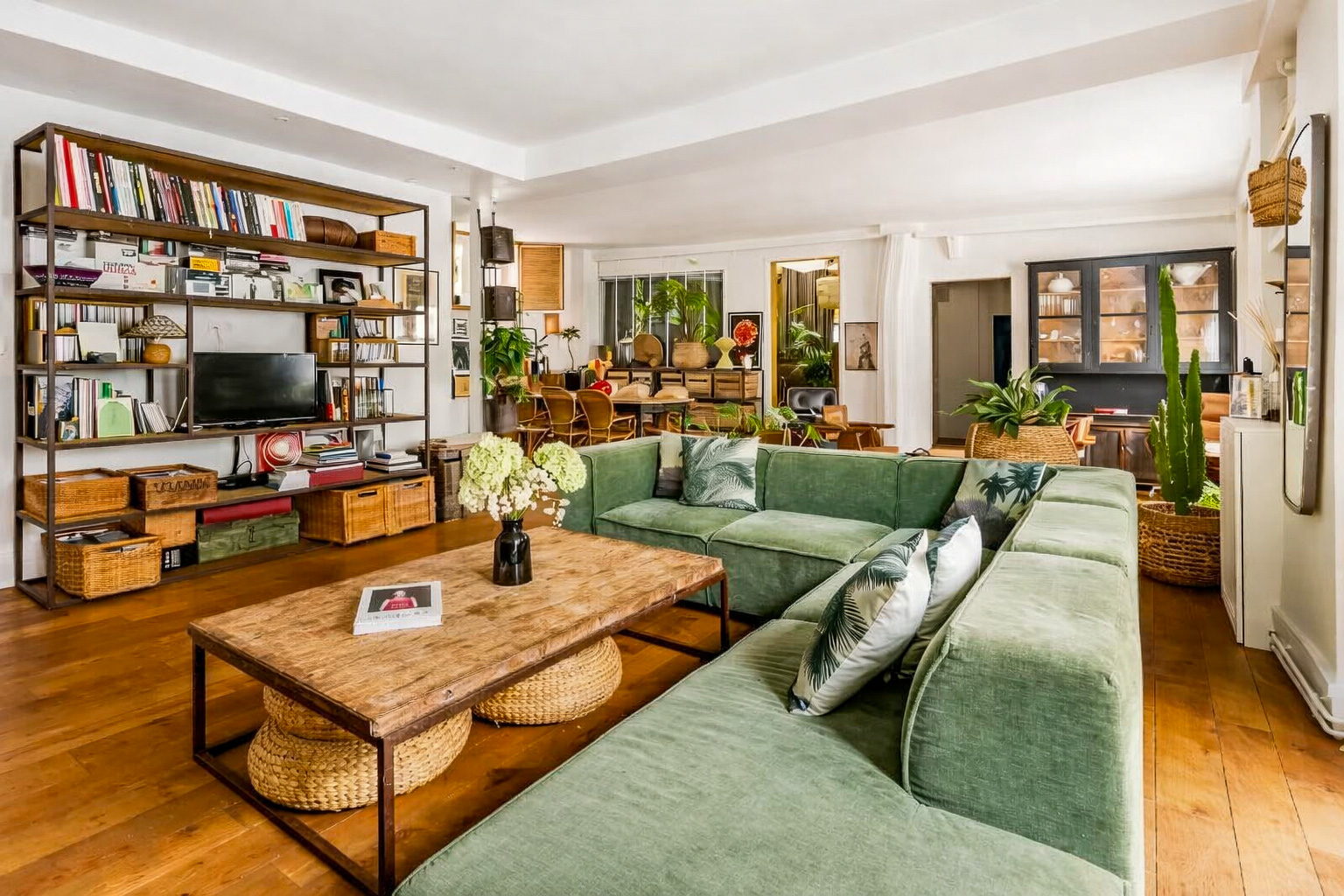 Lorsque nous rencontrons Vir* et Nie*, l’appartement fonctionne déjà. Installé au premier étage d’un immeuble donnant sur une cour aux anciennes devantures d’ateliers, le lieu raconte une histoire artisanale et végétale que le couple s’est appropriée au fil du temps.