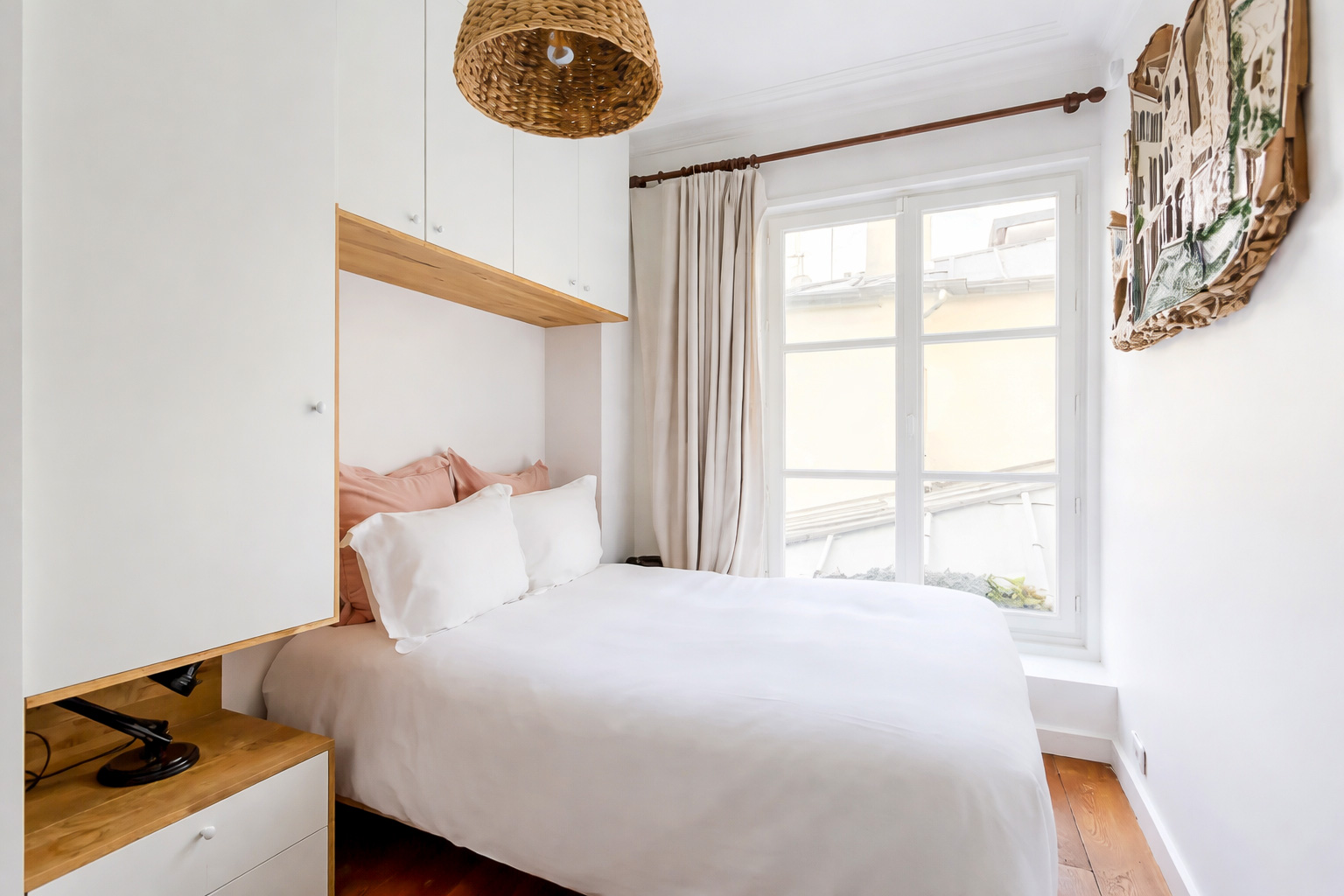 En 7 semaines, l’intervention s’est concentrée sur une recomposition précise de l’espace nuit et un travail massif de rangements sur mesure. Le plan reste intact, mais les usages changent profondément.