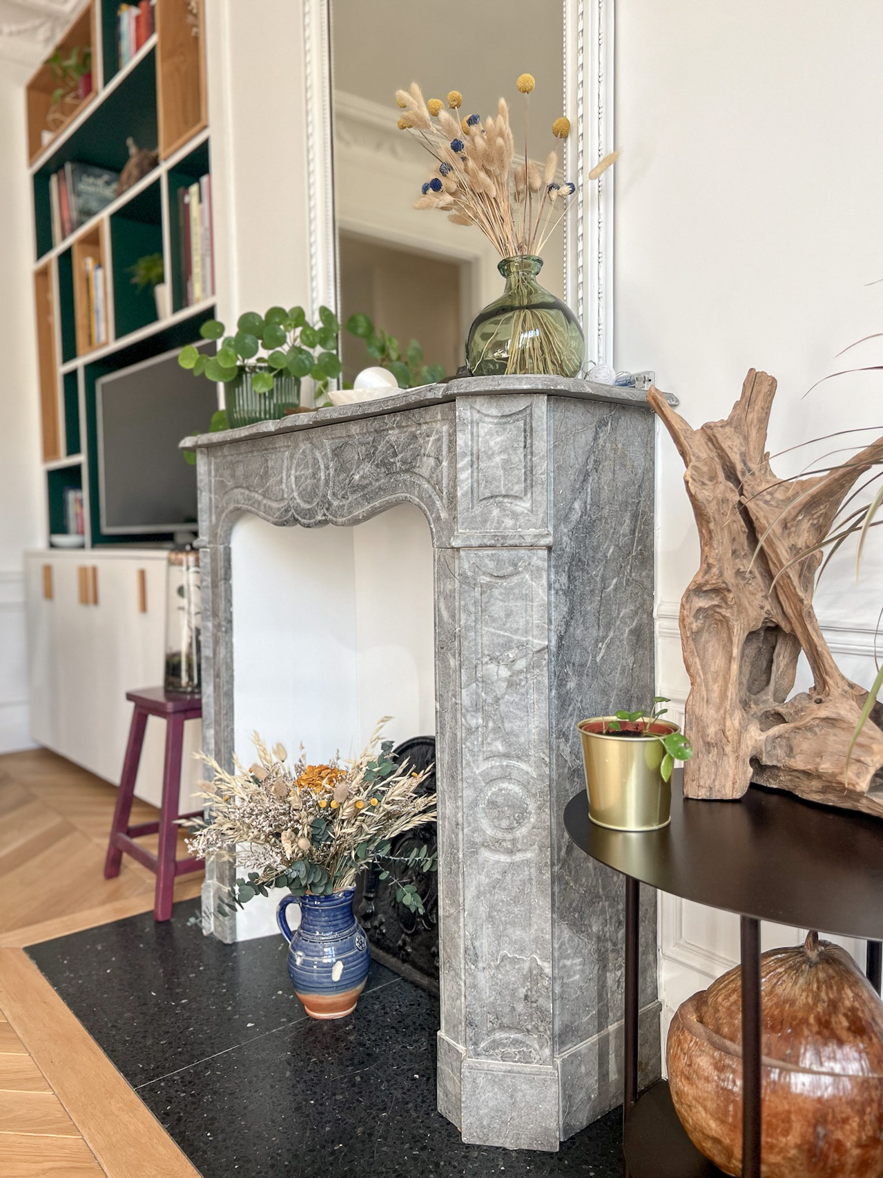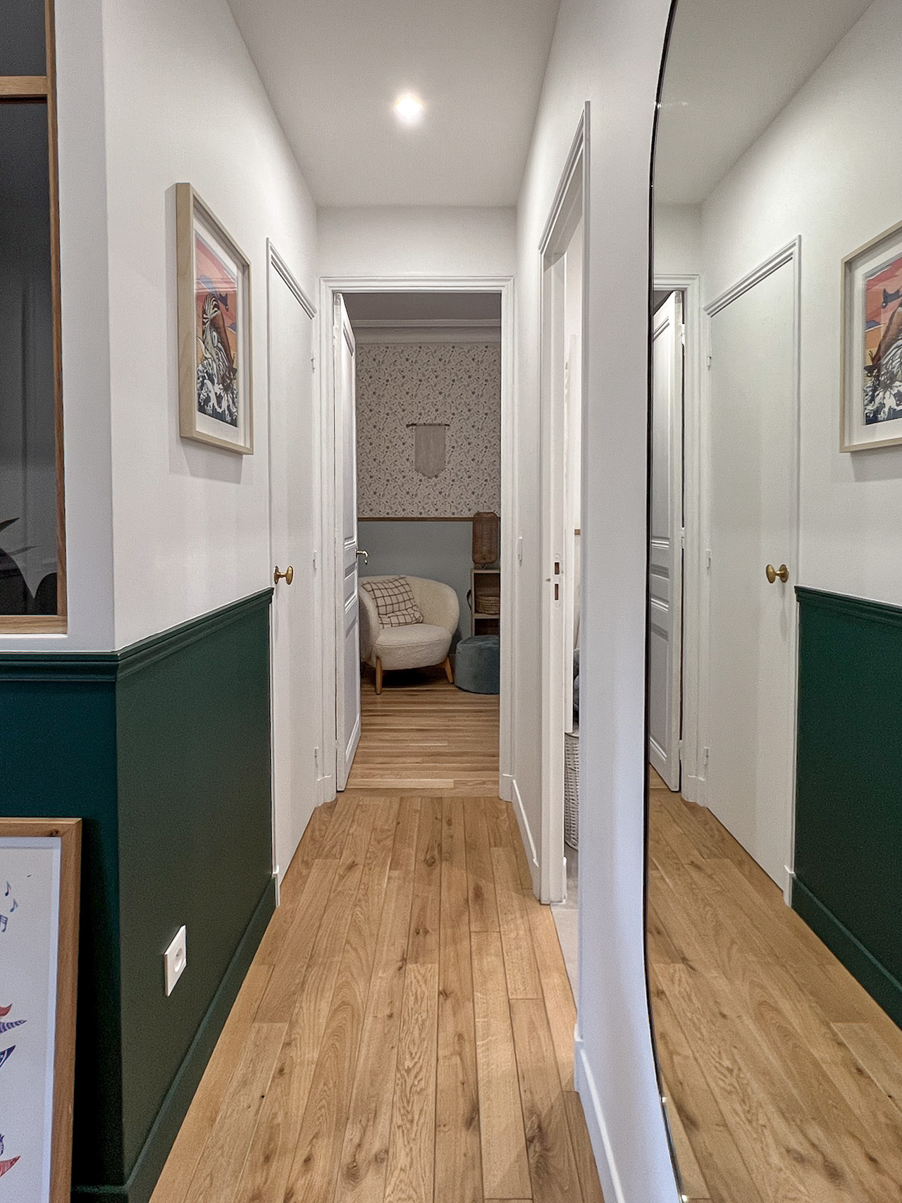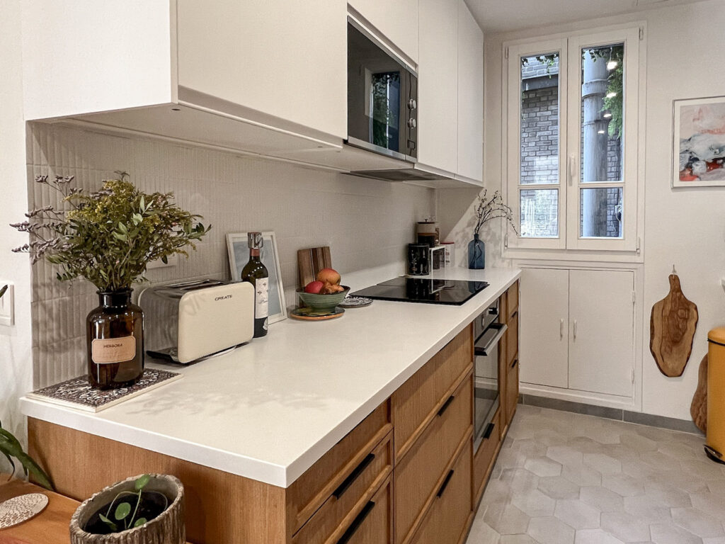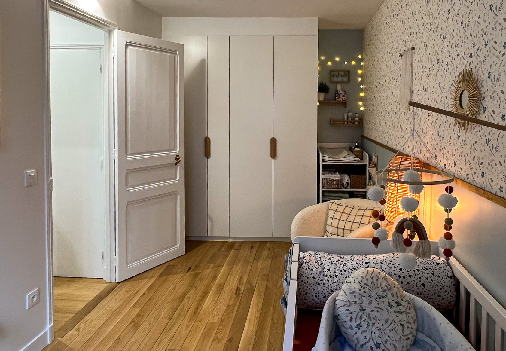 Plus qu’une simple rénovation, le projet a consisté à reprendre le plan en profondeur, à faire des choix structurants et à transformer cet appartement en un lieu adapté au quotidien d’une famille, tout en préservant le caractère haussmannien et en valorisant la relation directe avec les arbres du Père Lachaise.