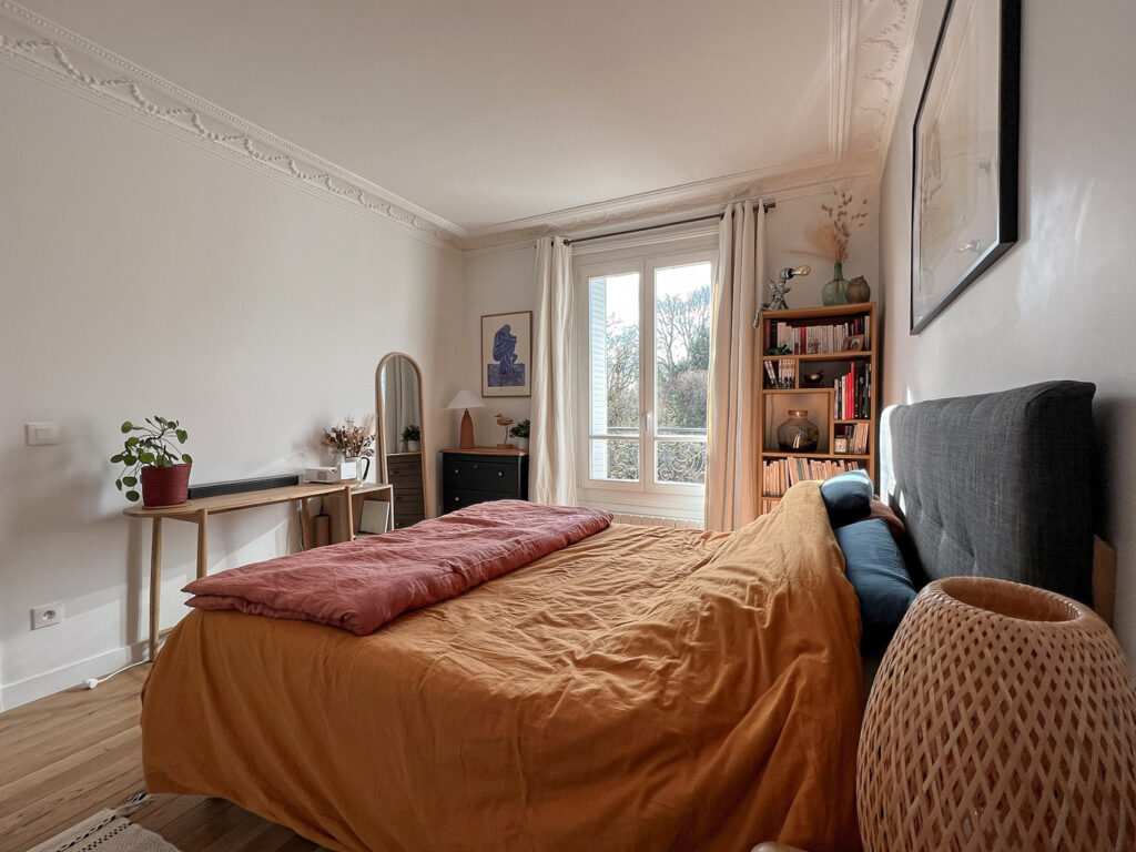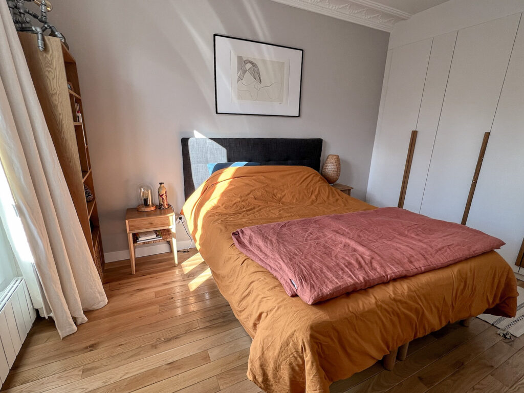 Avant le confinement, Ol* et Is* vivaient chacun de leur côté : l’un au pied de la butte Montmartre, l’autre à deux pas du Père Lachaise. Lorsqu’ils ont décidé d’acheter un logement pour y vivre ensemble, ils ont jeté leur dévolu sur un appartement de 86 m², baigné de lumière et offrant une vue imprenable sur les arbres du Père Lachaise.