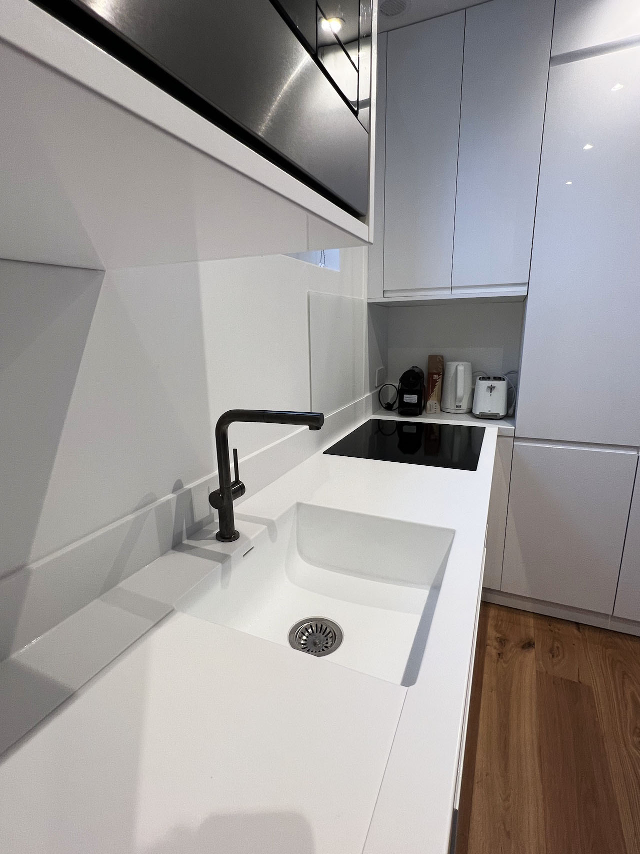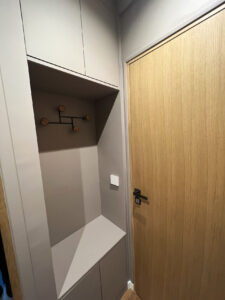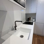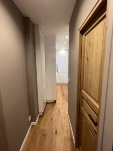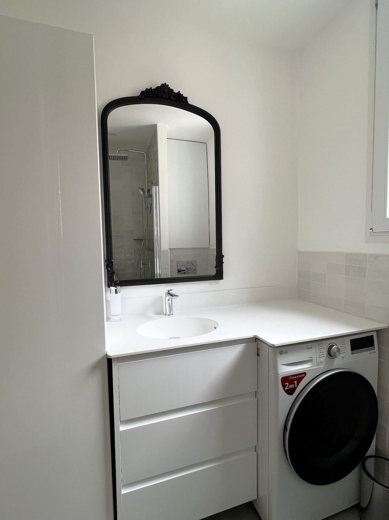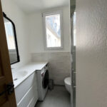 Techniquement, le chantier n’a pas présenté de surprises majeures, mais a demandé un travail millimétré : remplacement des menuiseries extérieures pour un meilleur confort thermique, isolation intérieure pour viser un DPE en catégorie D, reprise complète de la plomberie et de l’électricité, et coordination précise des corps d’état.