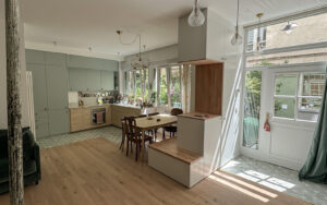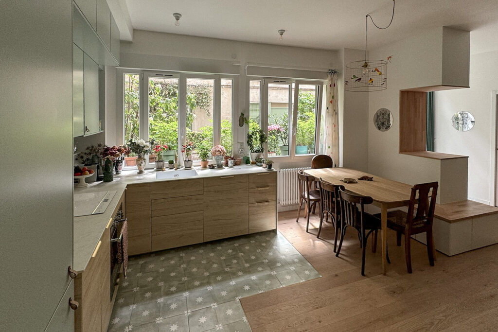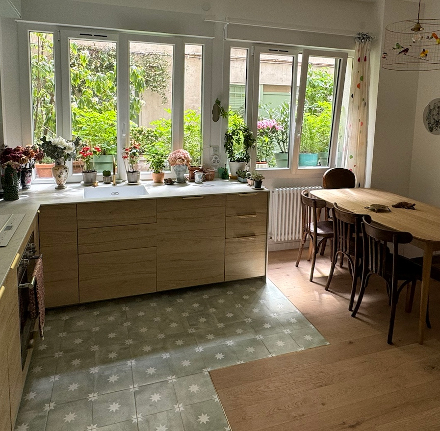 Après quatre mois de travaux (hors délai lié aux poutres), les 2 nouvelles occupantes profitent désormais d’un intérieur parfaitement adapté à leurs besoins, combinant esthétisme et fonctionnalité. Ce projet a su relever les défis d’un rez-de-chaussée en optimisant chaque mètre carré et en sublimant la lumière naturelle, pour un résultat à la fois harmonieux et chaleureux.