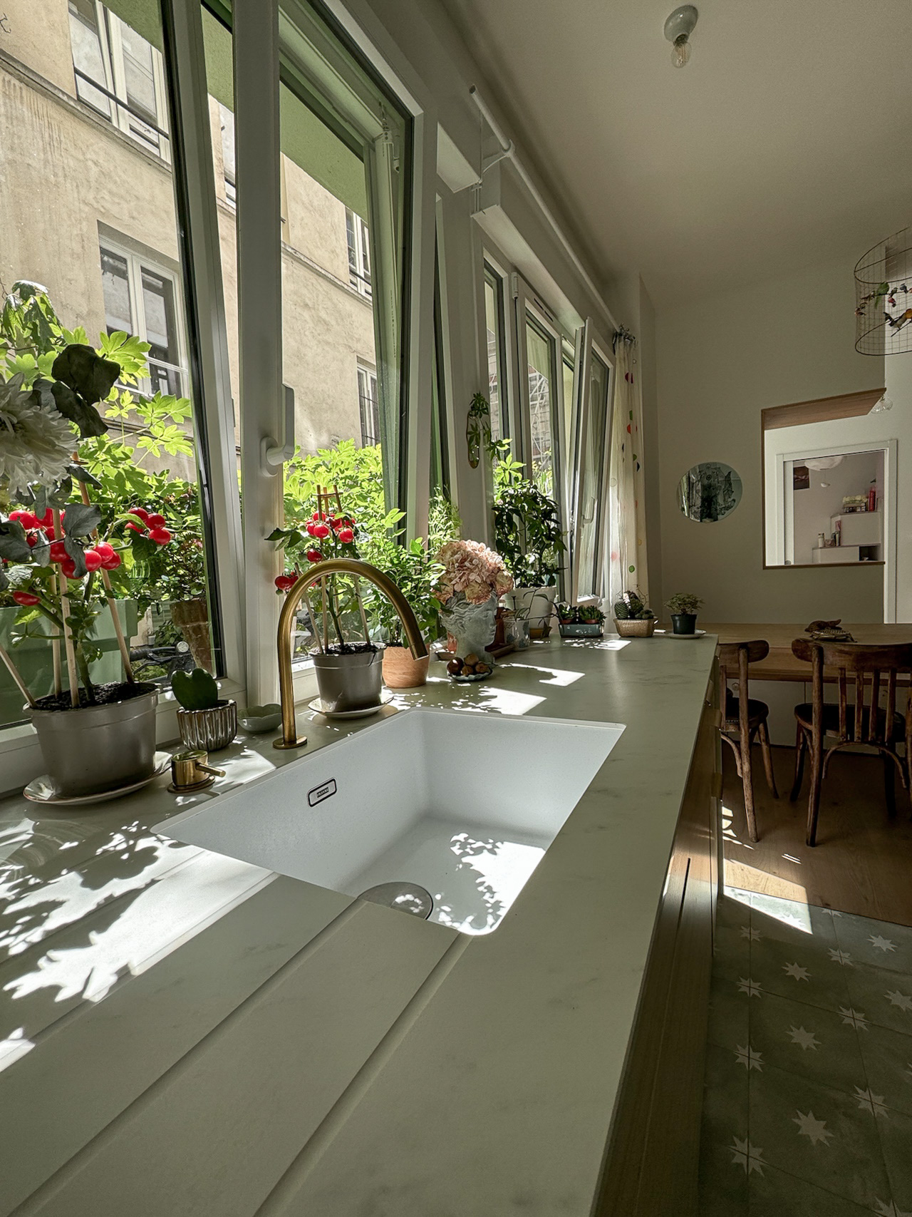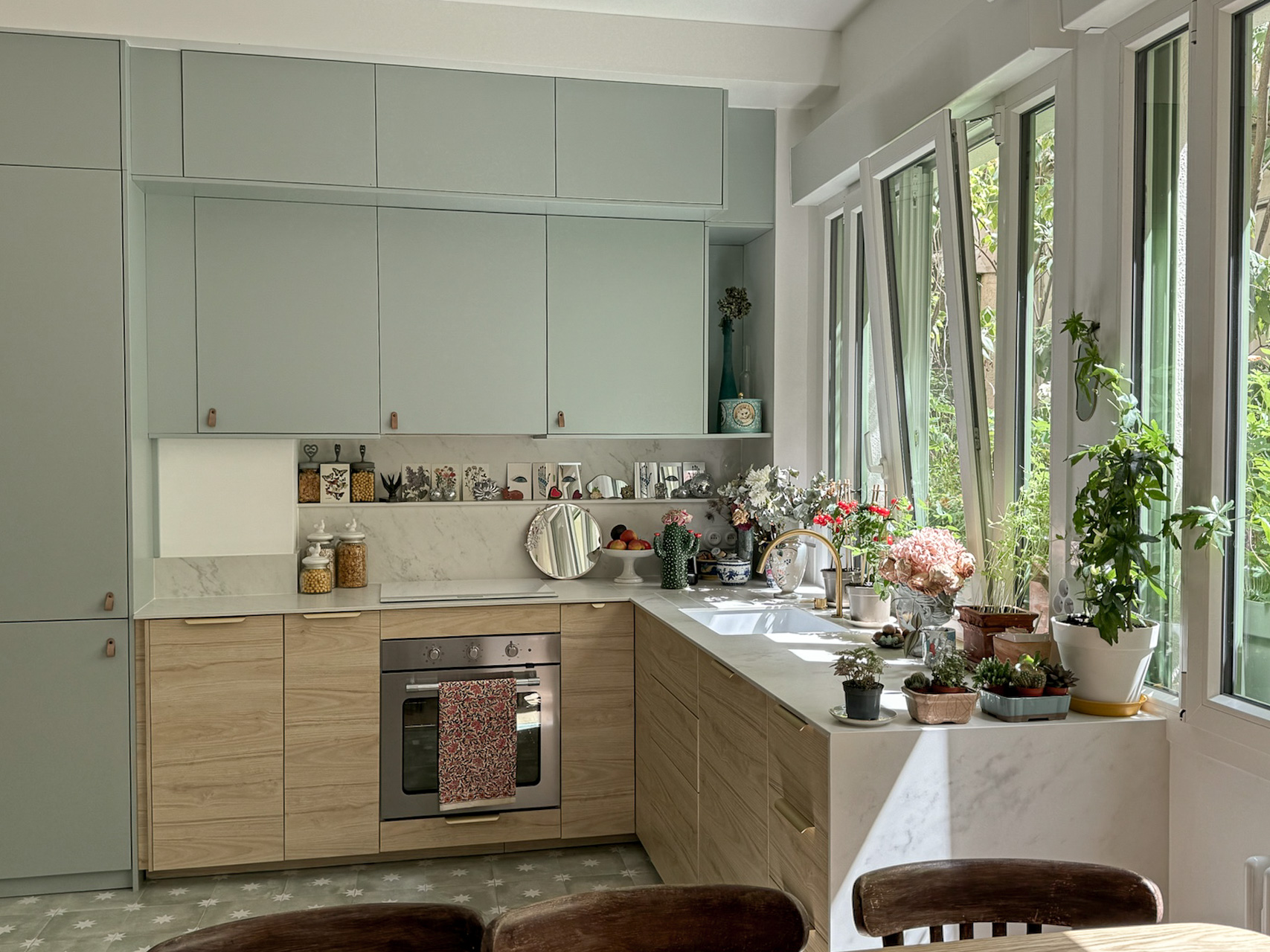- Un plan de travail en Dekton Marina, pièce maîtresse qui sublime l’ensemble.