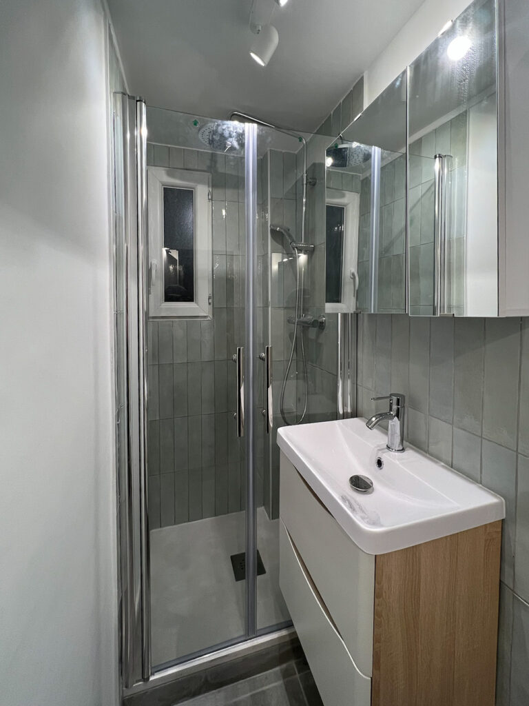 - Une salle de bain efficace et accueillante, où chaque élément a été pensé pour gagner de la place.