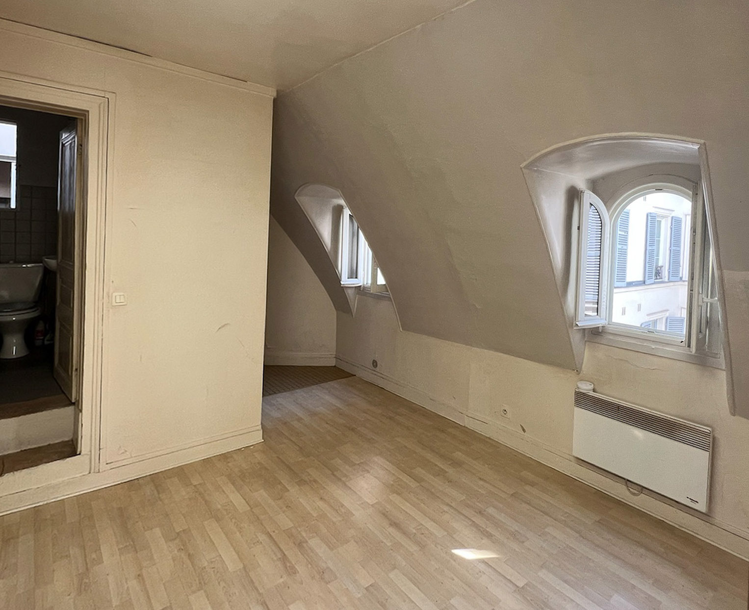 Au* et Gh* souhaitaient investir dans un studio à rénover pour optimiser leur rentabilité locative et, un jour, y loger un de leurs enfants. Séduits par son emplacement et le standing de l’immeuble, ils ont rapidement identifié les sujets à traiter : un espace sombre, mal agencé et énergétiquement inefficace.