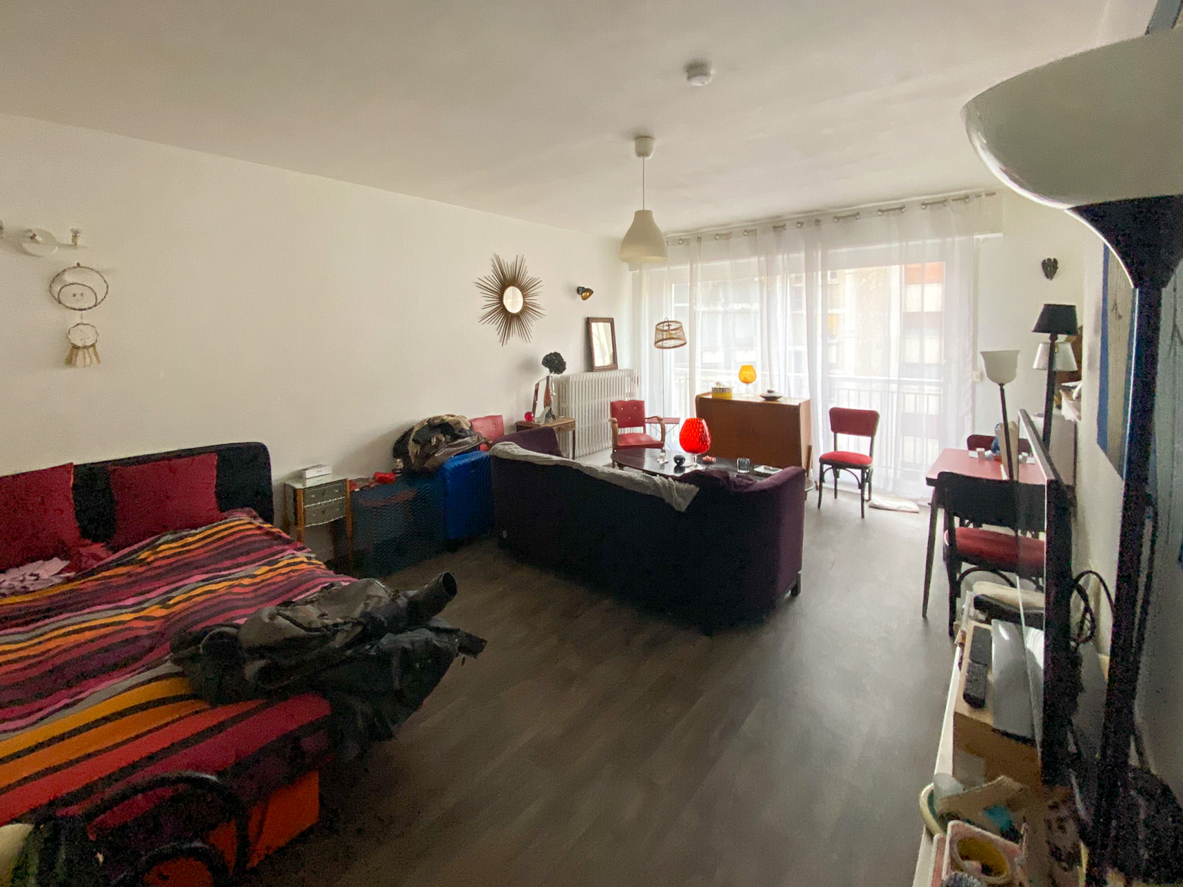 Projet 2 : une petite chambre derrière une verrière, et un salon cosy mais sans vrai espace pour les repas.