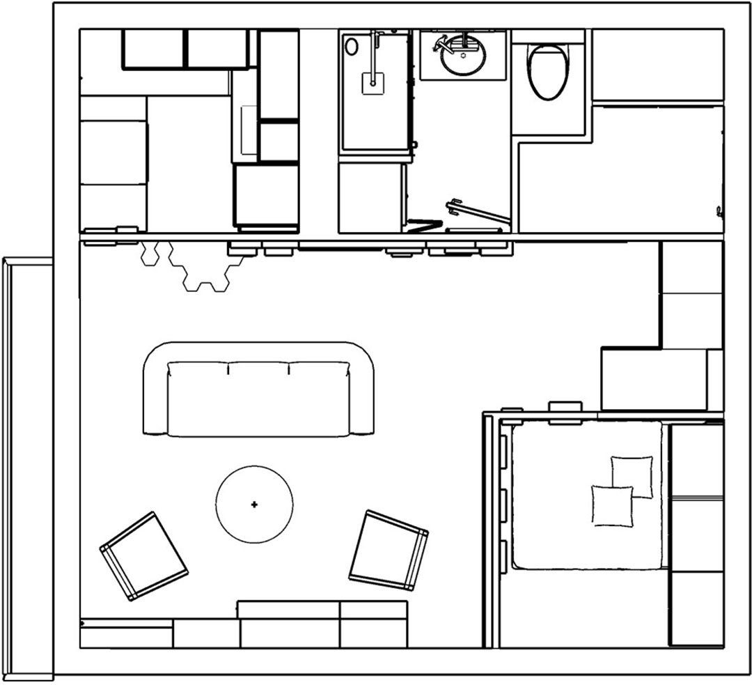 Après 3 mois de travaux, ralentis par la crise sanitaire, Al* prend possession de son tout nouveau studio, qui a dorénavant les caractéristiques d’un petit appartement. Fonctionnel et confortable, le résultat bénéficie en outre d’une empreinte esthétique désormais forte, ce qui comble ses attentes en la matière. Il qualifie le résultat de « encore mieux que je ne l’espérais ».